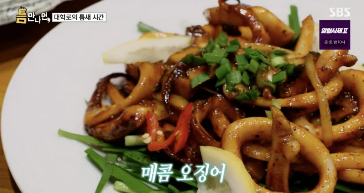 • 고추장소스에 조리된 오징어와 각종 야채가 매콤하면서도 깊은 맛을 선사합니다.